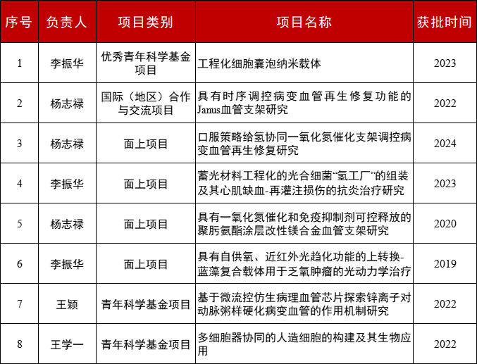 此前,中心实验室科研团队已获批国家自然科学基金优秀青年科学基金项目、国际(地区)合作与交流项目、面上项目、青年项目以及粤莞联合基金重点项目、粤港澳研究团队项目、粤莞联合地区培育项目、省自然、市重点等各类基金项目20余项。近3年成果发表于Nature Communications,Research, Advanced Science,Biomaterials,Bioactive Materials,ACS Nano等国际一流学术期刊。团队中已有4人经南方医科大学评定为优秀学术骨干、青年学者人才;杨志禄研究员、李振华研究员入选”全球前2%顶尖科学家“榜单。这充分展现了青年科研人员在科技创新中的巨大潜力,标志着中心实验室在青年科技人才培养方面取得显著成效。
